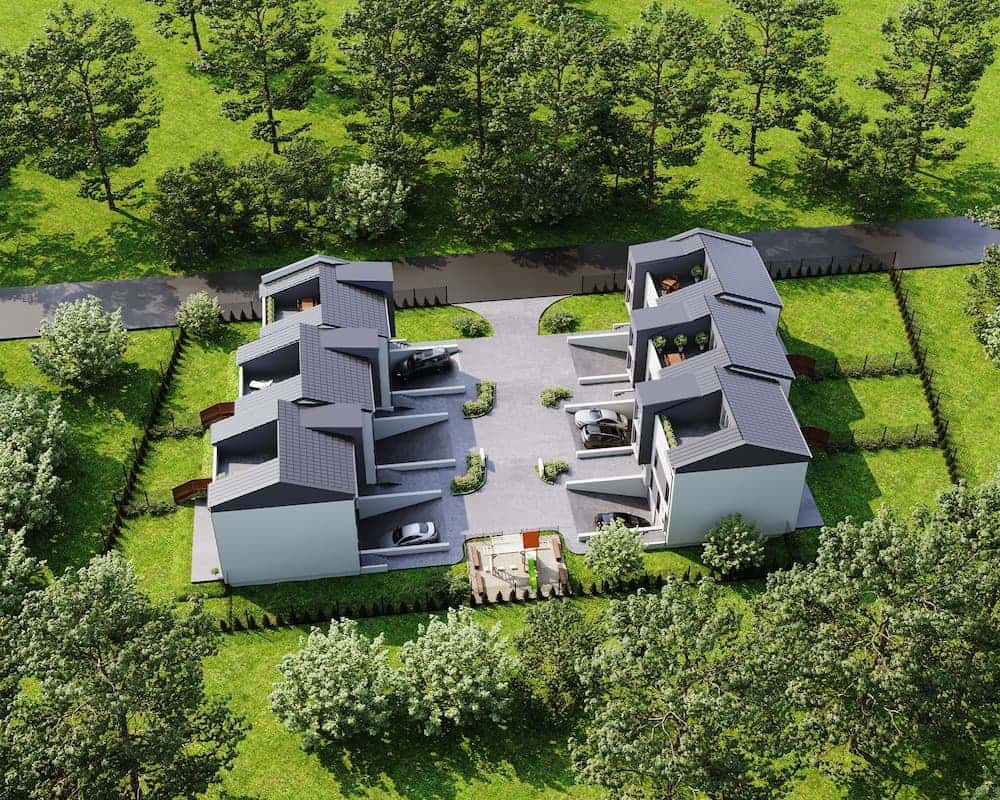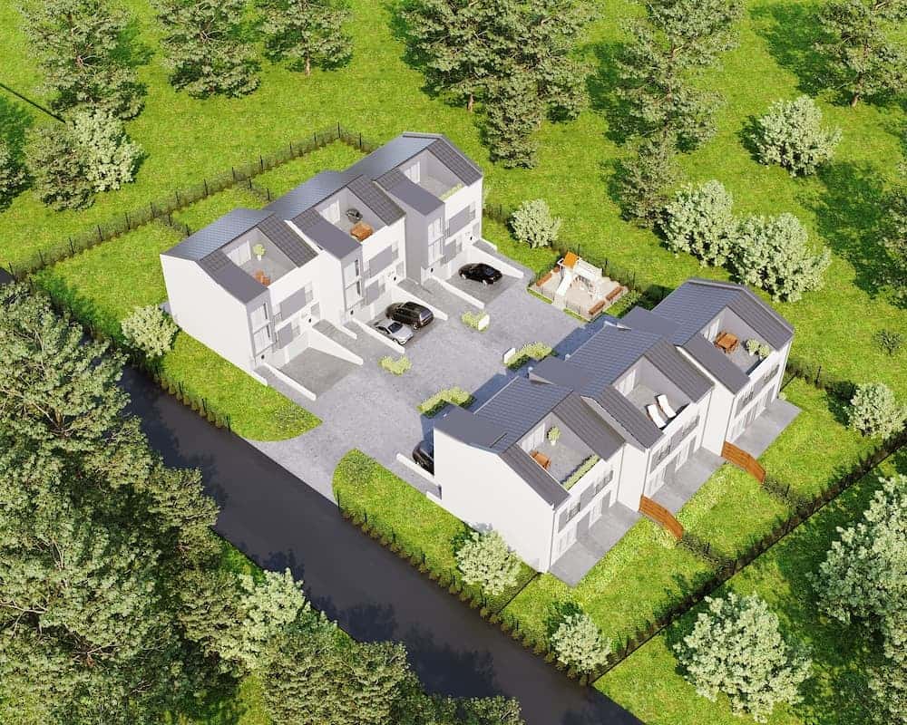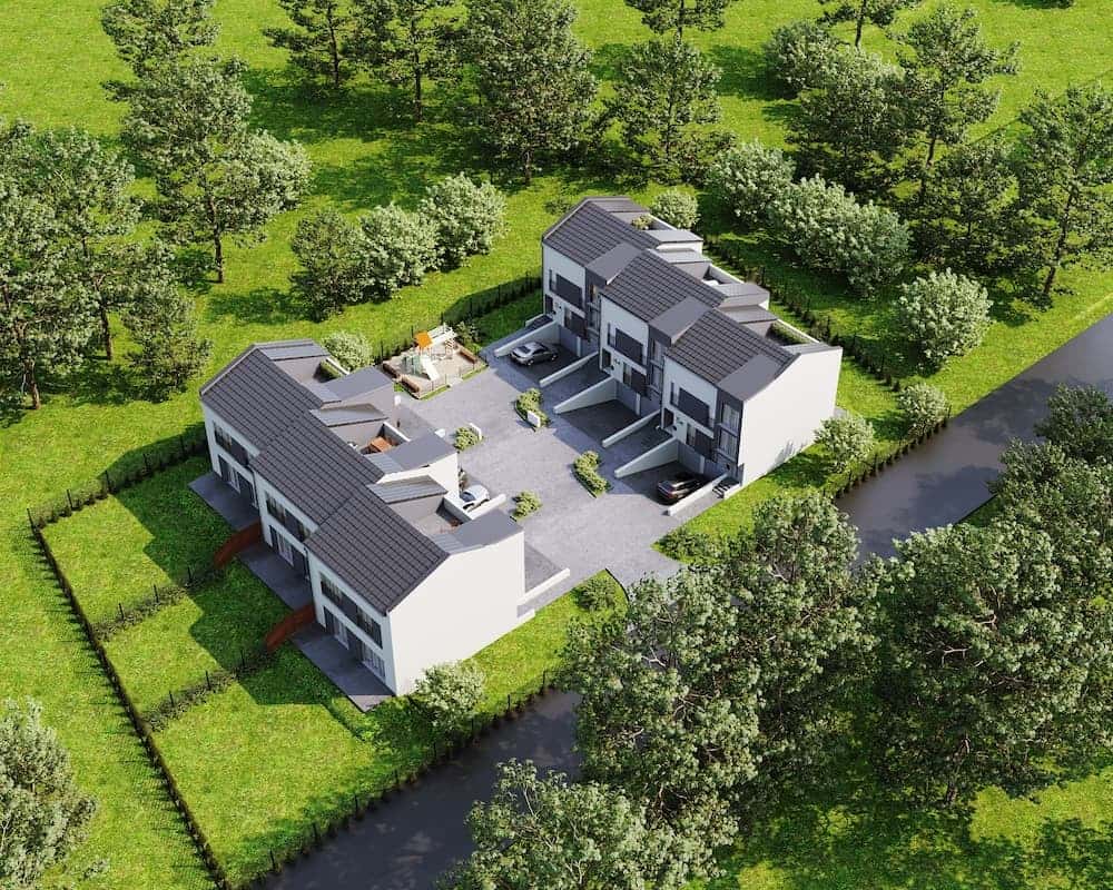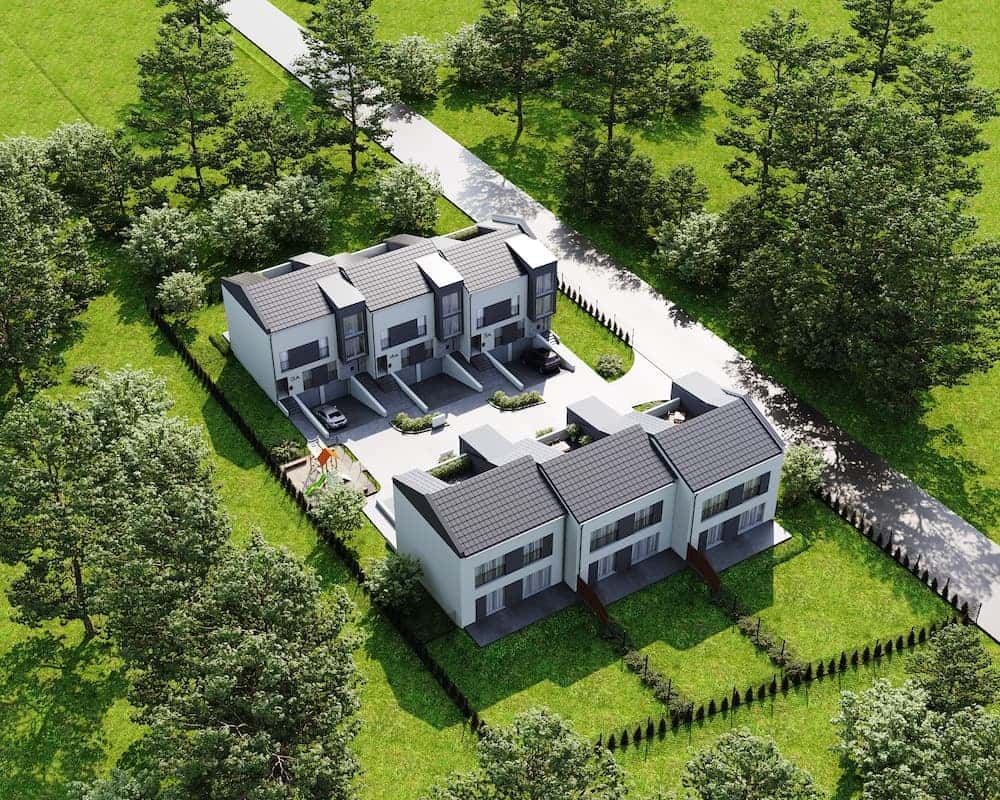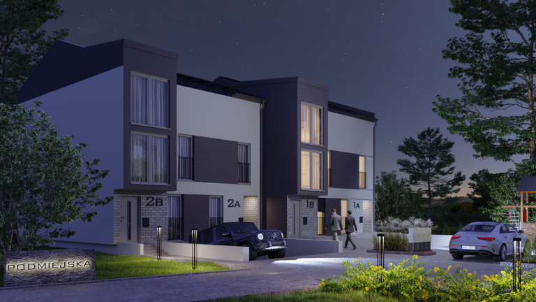 Bliźniaki Podmiejska to kameralna inwestycja, obejmująca w pierwszym etapie 4 budynki jednorodzinne dwulokalowe w zabudowie bliźniaczej, czyli łącznie 8 mieszkań. Są one dostępne w dwóch wariantach. Mieszkania na parterze mają 108,26 m² powierzchni, na której mieszczą się m.in. 4 ustawne pokoje. Z salonu wychodzi się na taras (19,20 m²) i do prywatnego ogrodu o powierzchni od 85,60 m² do 244,00 m² (w zależności od wybranego mieszkania).Rozwiń ∨